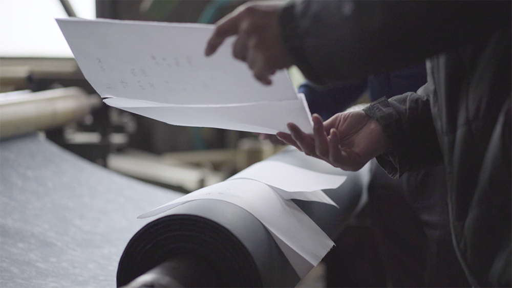 抄造の際に、お客様に立ち会っていただき、出来上がる紙の風合い、見た目などを判断していただきます。