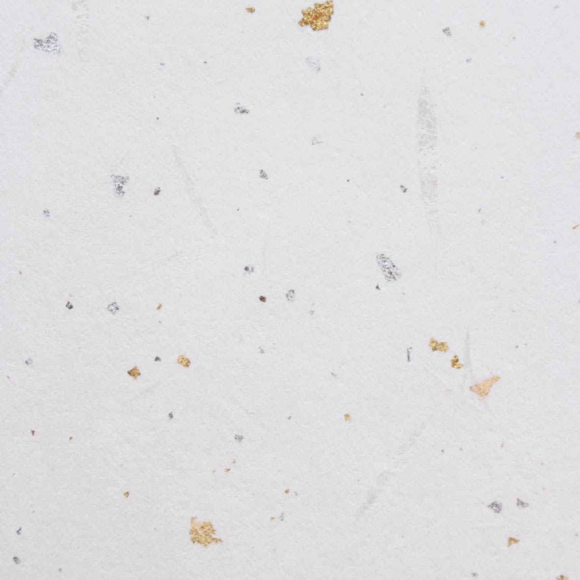 ・その他の特徴:印刷なしで使用しても、散りばめられた金銀の箔と華(と呼ばれる繊維)が充分に華やかで煌びやかな和紙です。